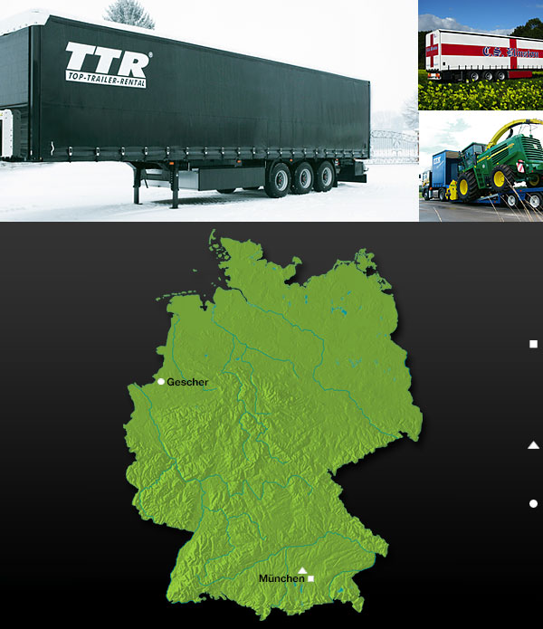 Stammsitz München Top-Trailer-Rental GmbH Stahlgruberring 36 81829 München Tel.: 0 800 / 00 98 640 Fax.:0 25 42 / 956 39 70 Fahrzeugaussenlager Auf der Schrederwiesen 37a 80995 München Niederlassung Gescher Top-Trailer-Rental GmbH Bahnhofstraße 151 48712 Gescher Tel.: 0 25 42 / 98 64 0 Fax.:0 25 42 / 956 39 70 |